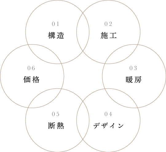 長持ちする構造、飽きのこないデザイン、充分な断熱・暖房性能、確実な施工力、無理のない資金計画など、どの要素が飛びぬけても欠けても快適な家づくりは成り立ちません。