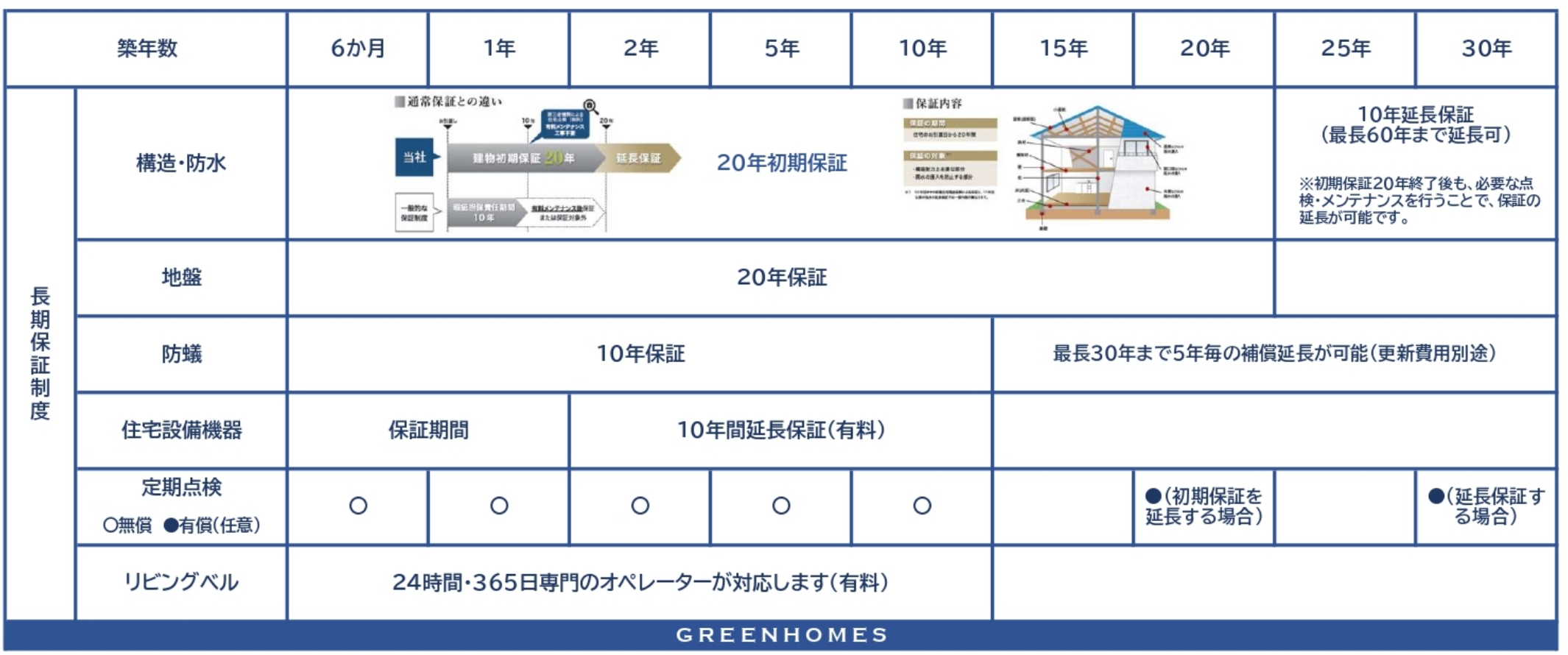 を提供します。10年目には、第三者機関による点検を実施し、より安心してお客様にお住まいいただける保証制度としております。