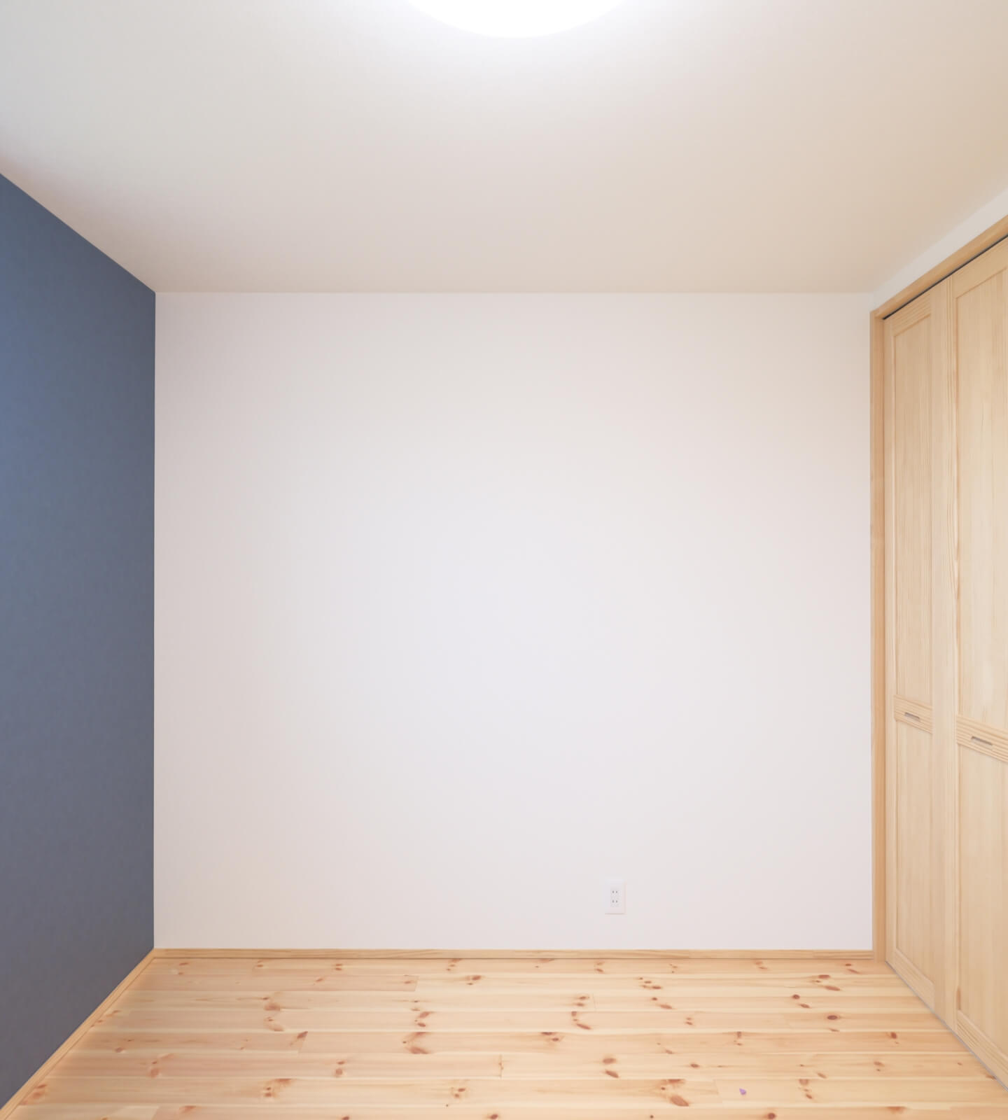 珪藻土仕上げによる「塗り壁」と表情豊かな「無垢床」で