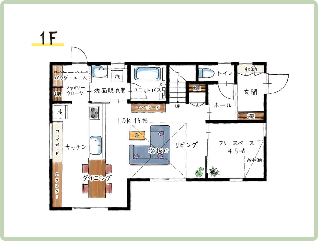 リビング隣のフリースペースは、目的や用途を決めず、フレキシブルに使うことができるので