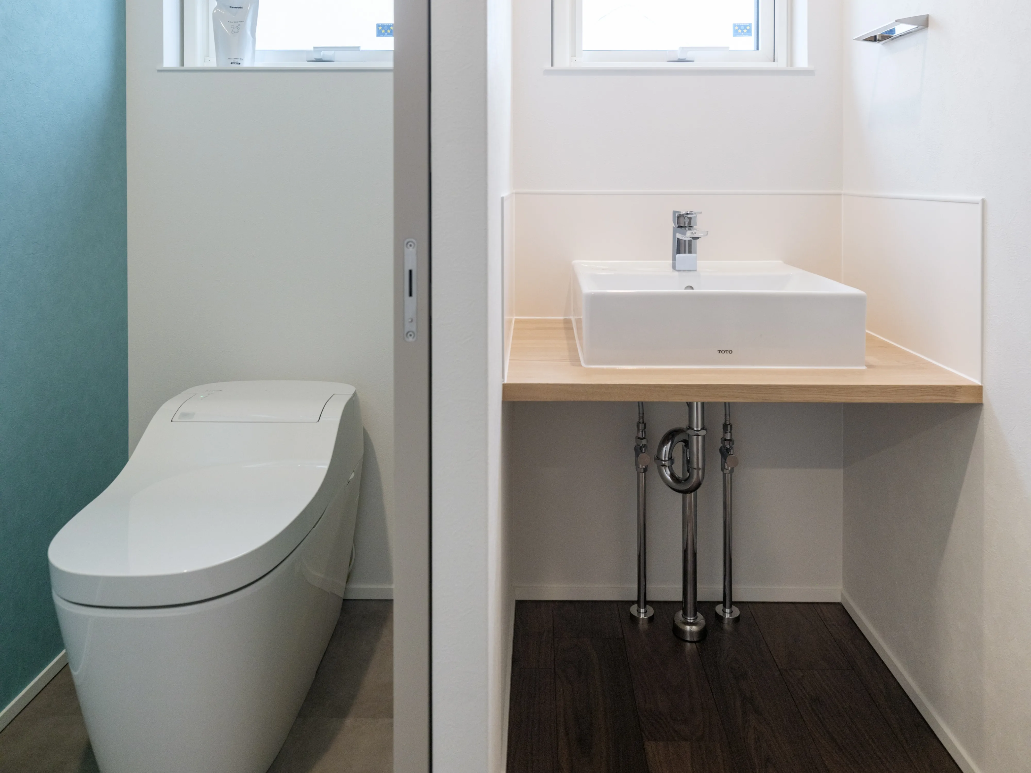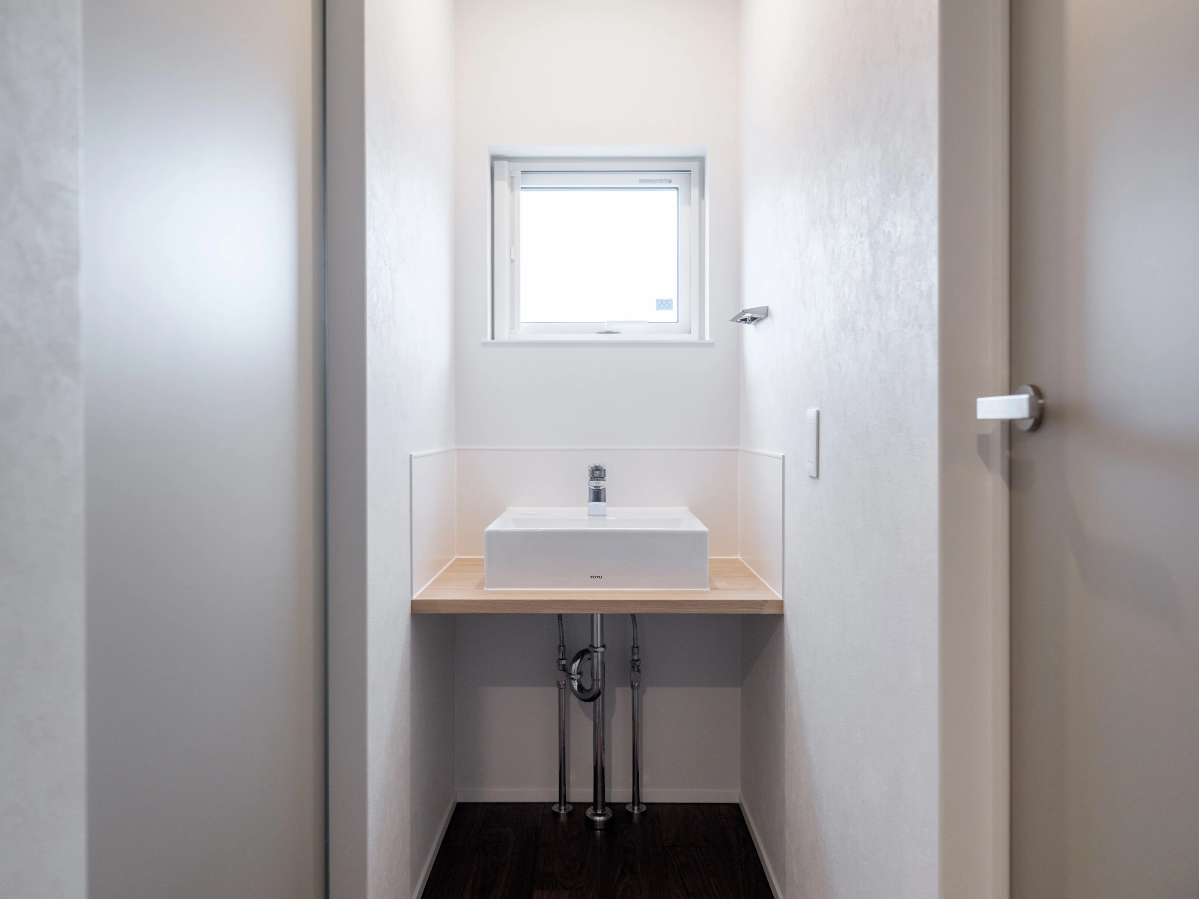 外から帰ったらすぐに手を洗える、便利で安心な配置。